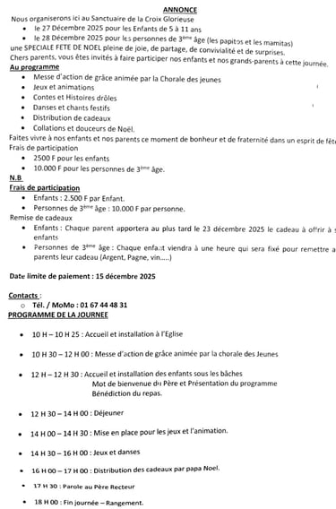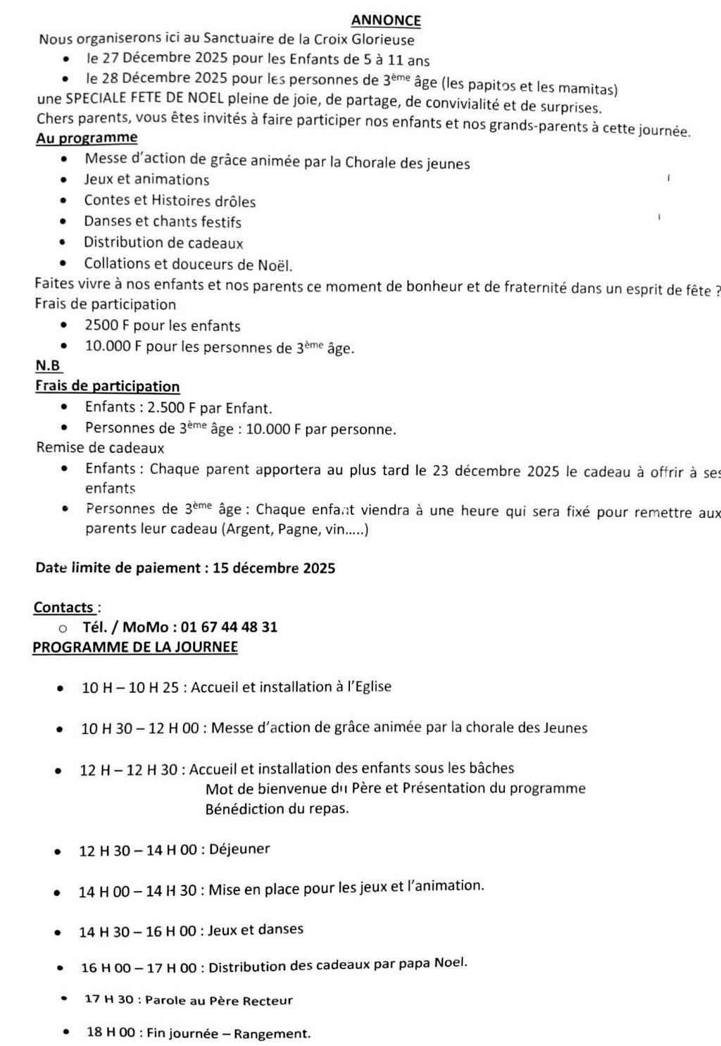 Pour ce préparer à mieux vivre le temps de l'avent, les prêtres du diocèse de Porto-Novo iront à l'écart dans le silence, la prière et la méditation au cœur d'une recollection qui se déroulera dans ce sanctuaire de la croix glorieuse le Mardi 25 Novembre 2025.